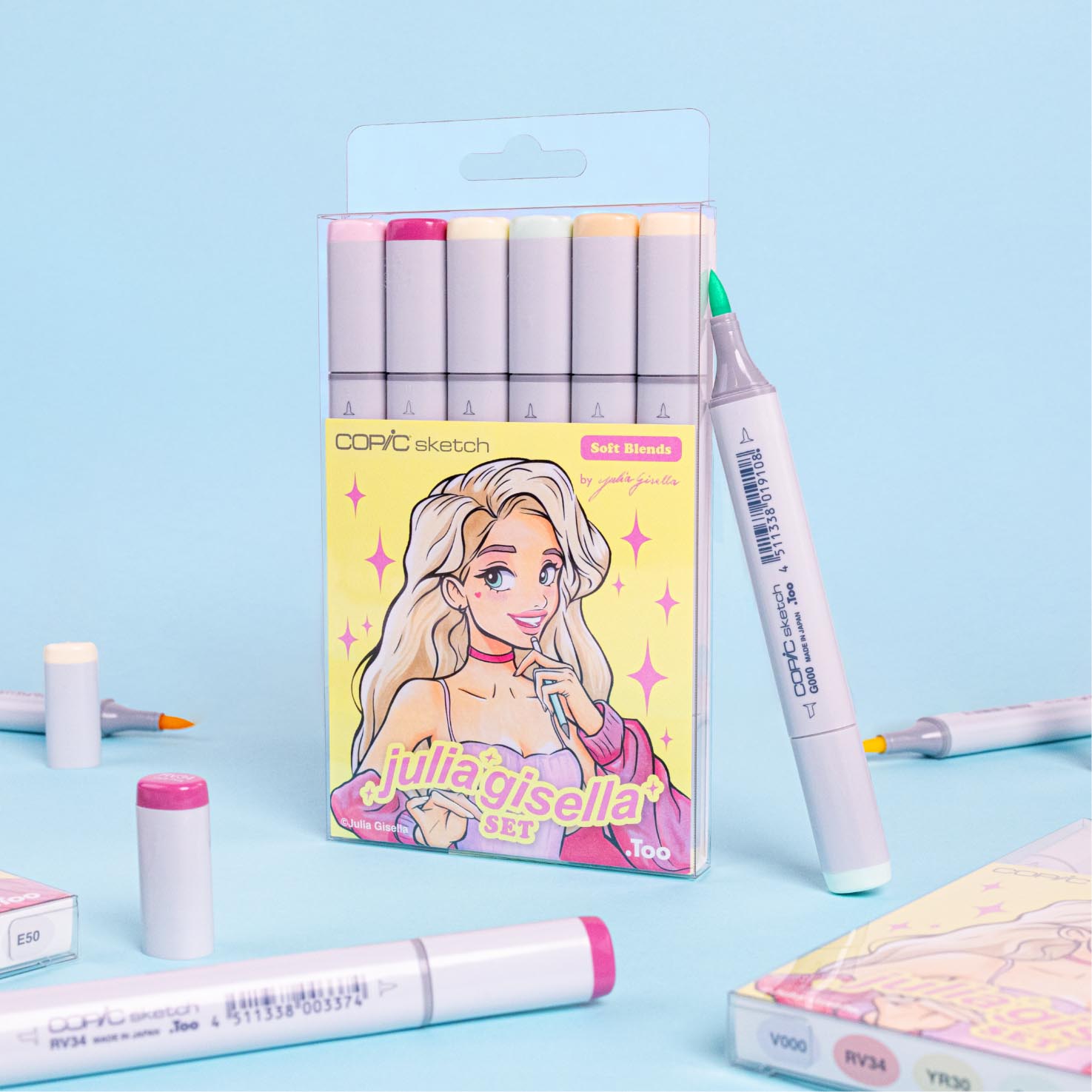 · Entdecke das von der beliebten Künstlerin Julia Gisella exklusiv zusammengestellte 6er Copic Sketch Set: Eine Sonder-Edition, die von der Künstlerin für lebendige, professionelle Ergebnisse handverlesen wurde. Du erhältst perfekt abgestimmte Farbtöne für Skizzen, Charakterkunst, Mode-Illustrationen und Oberflächendesign.
